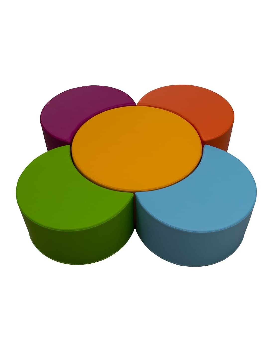 Juego de mesa redonda y 4 taburetes con forma de pétalo, que cerrado tiene forma de flor.
