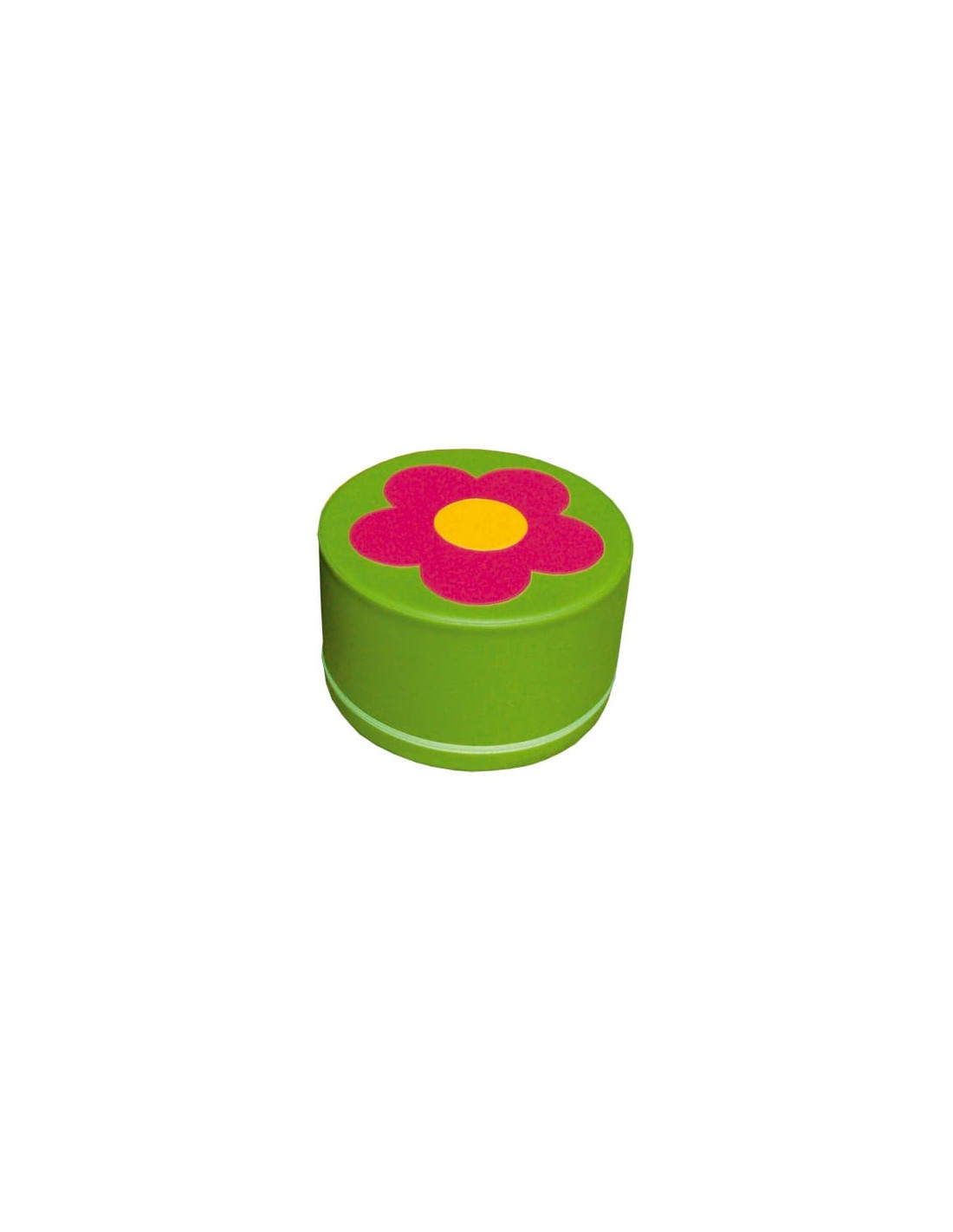 Mesa redonda con una flor estampada.