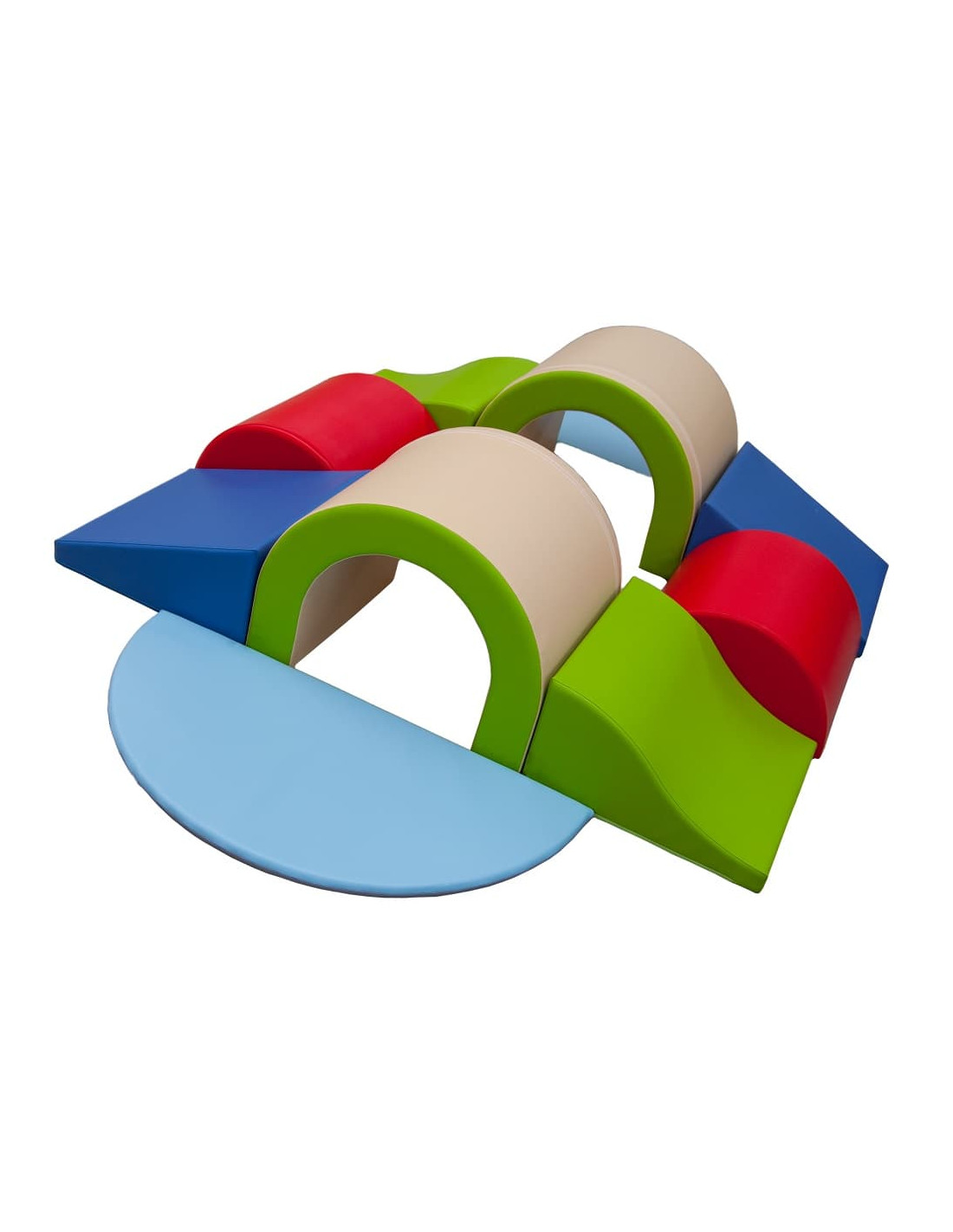 2 módulos medio cilindro y 2 tapetes medio círculo.