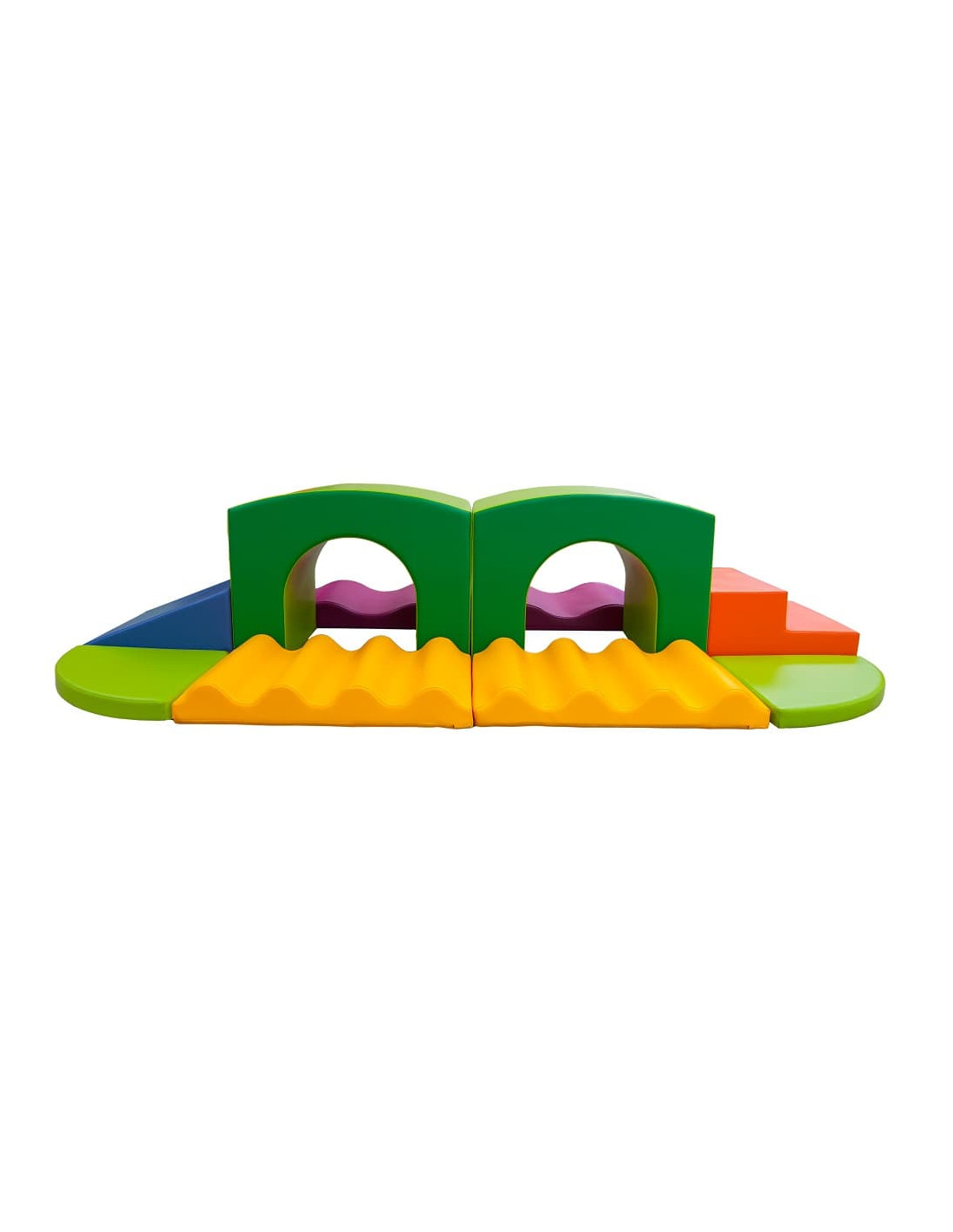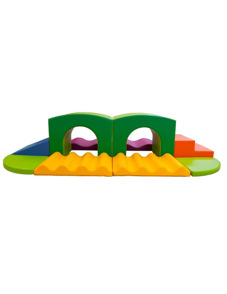 1 escalera de dos peldaños, 1 rampa, 2 módulos de puente
