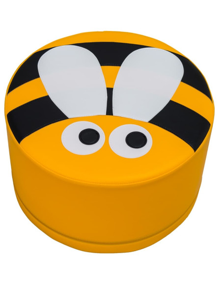 Taburete redondo con una abeja estampada.