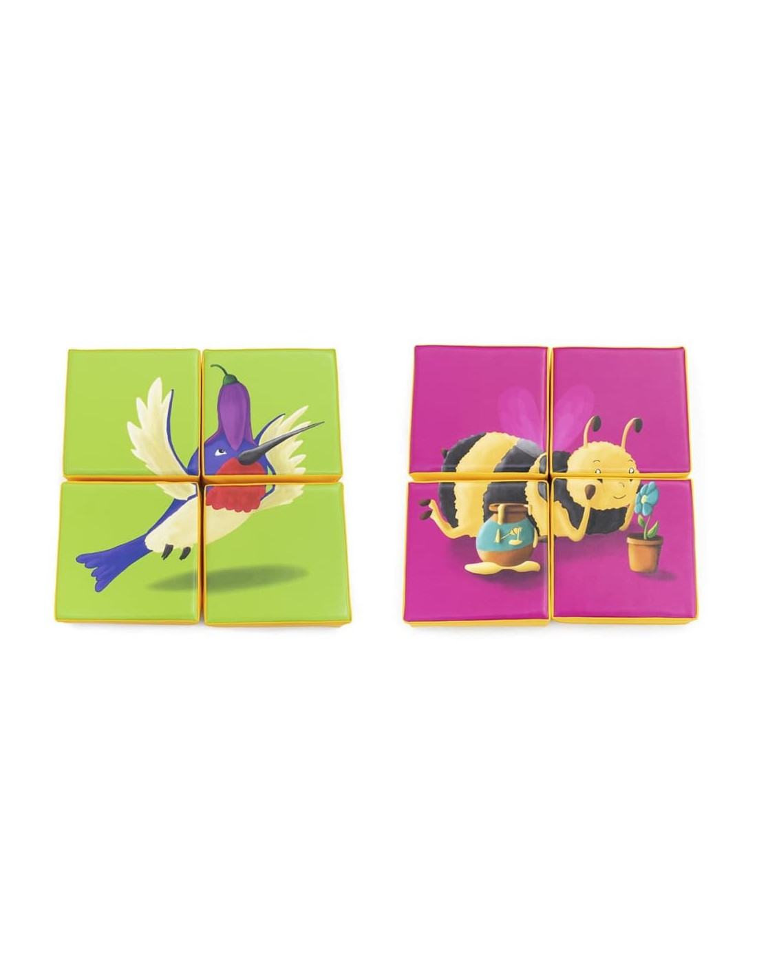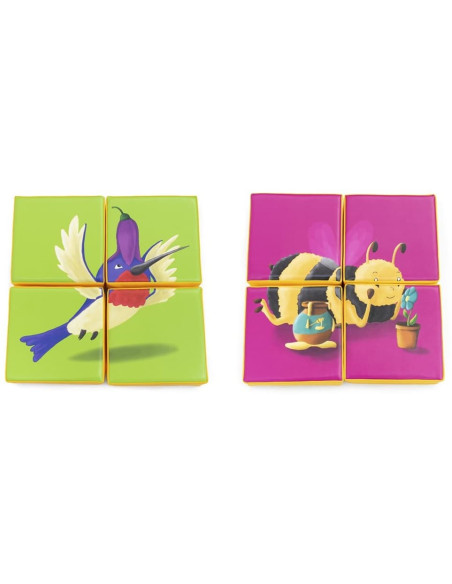 Puzzle de 4 piezas con imágenes impresas por ambas caras.