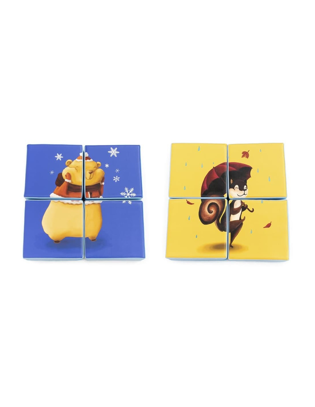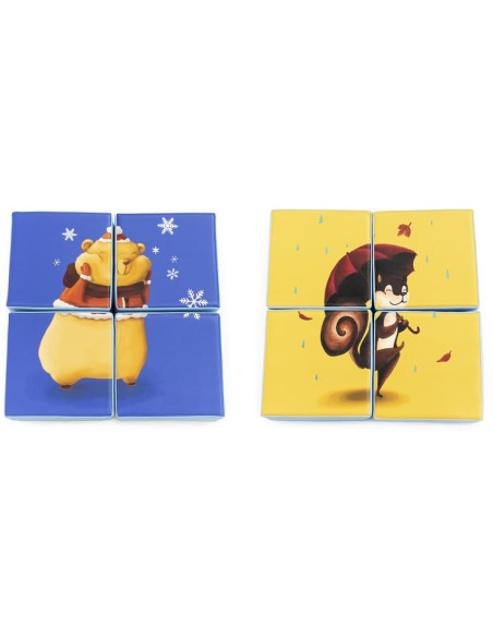 Puzzle de 4 piezas con imágenes impresas por ambas caras.