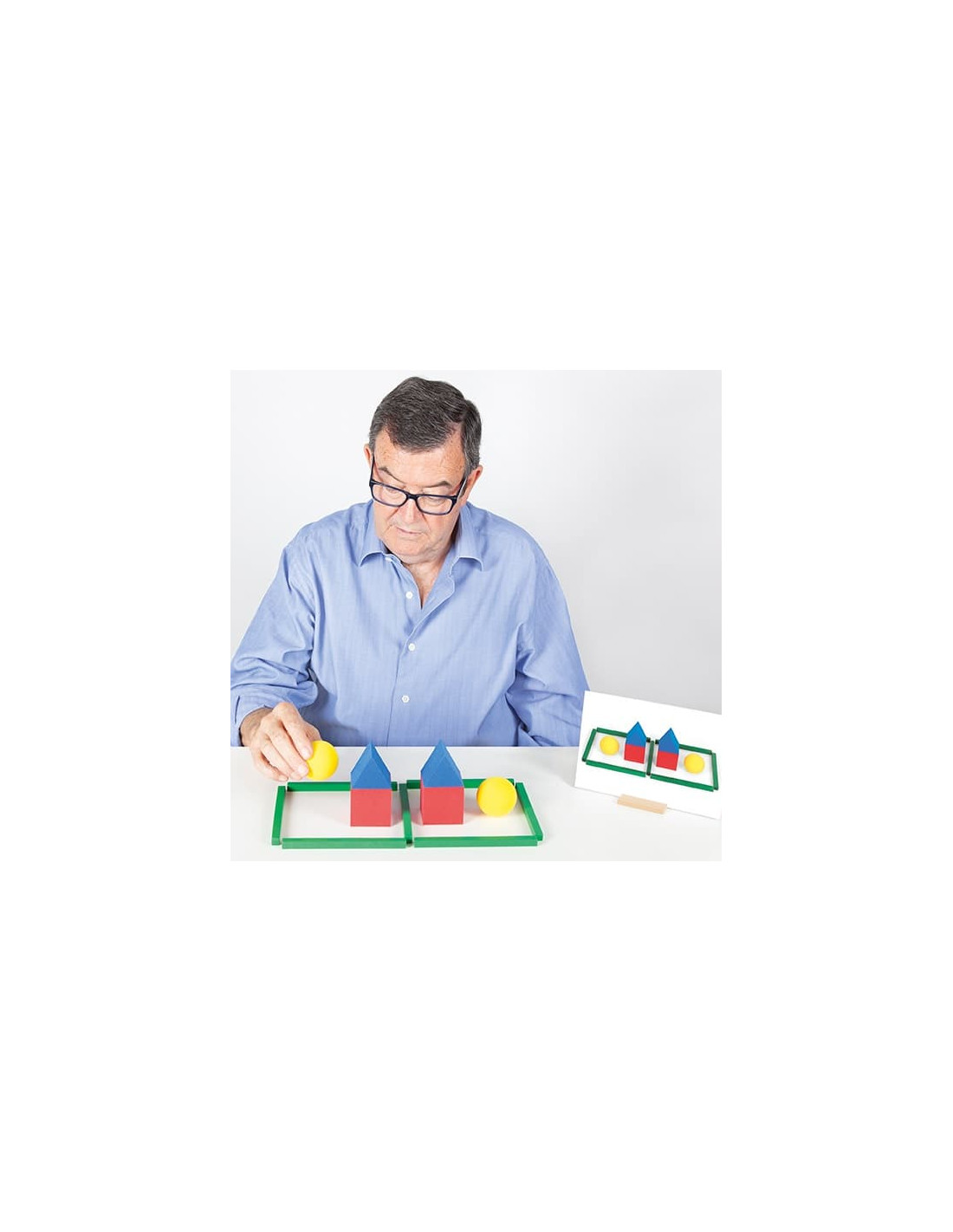 Incluye 15 regletas de madera, 14 figuras geométricas de