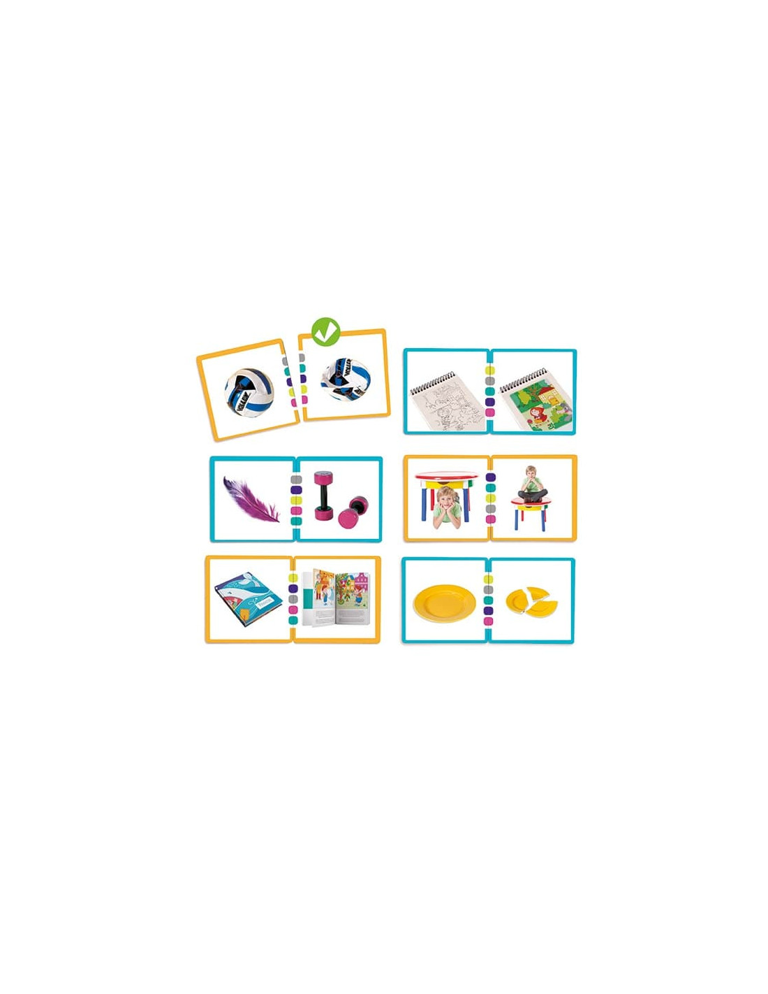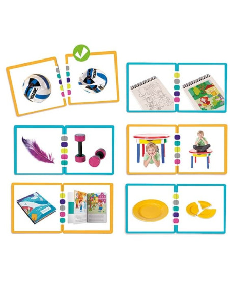 Juego de asociación lógica donde hay que asociar 34 parejas de fichas