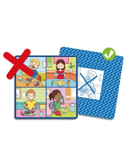 Observa las 4 imágenes de cada tablero y descarta con la cruz la actitud