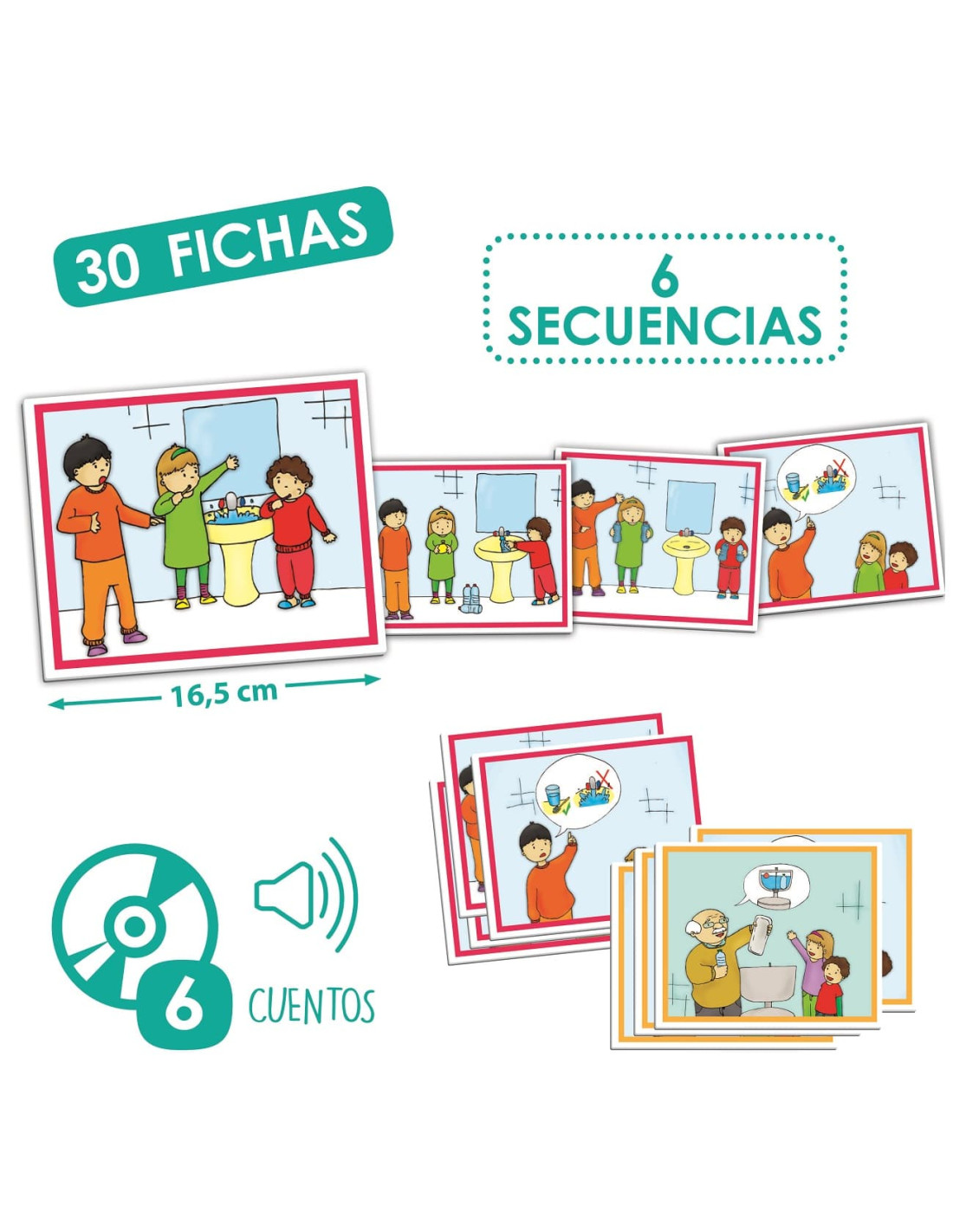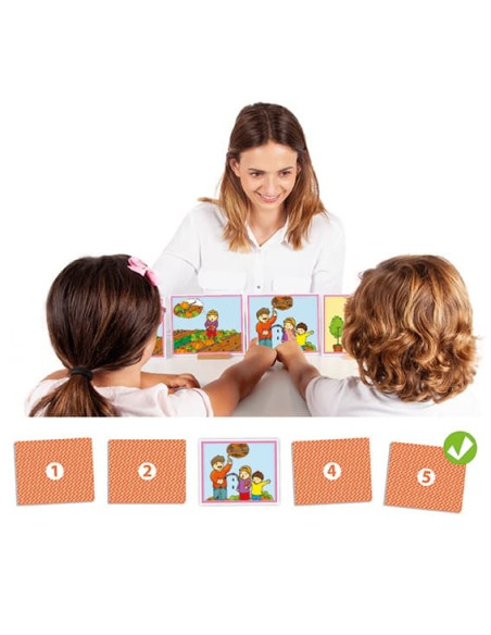 Cada historia consta de 5 fichas ilustradas que deben ser ordenadas