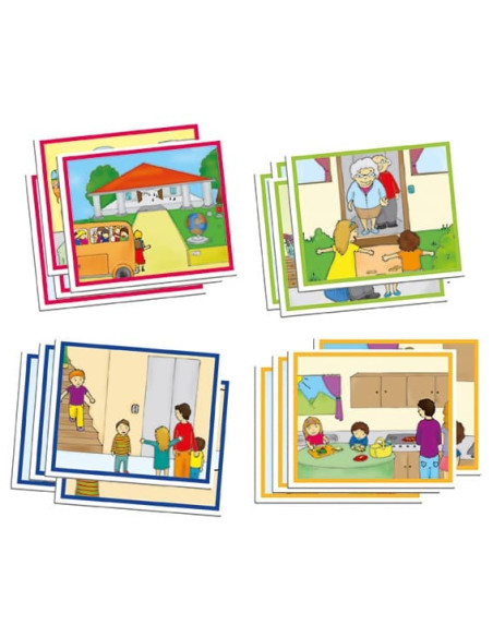 Cada historia consta de 5 fichas ilustradas que deben ser ordenadas