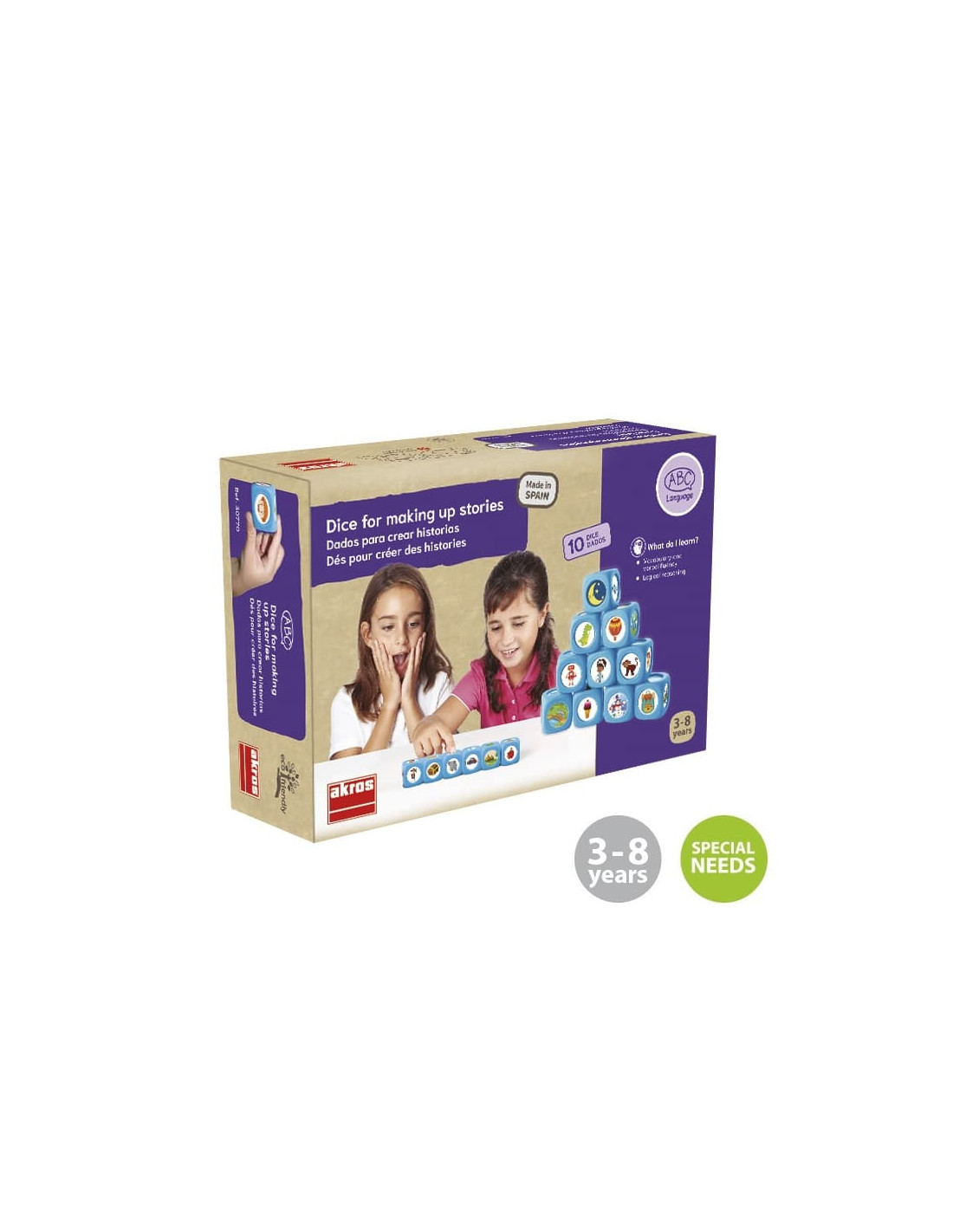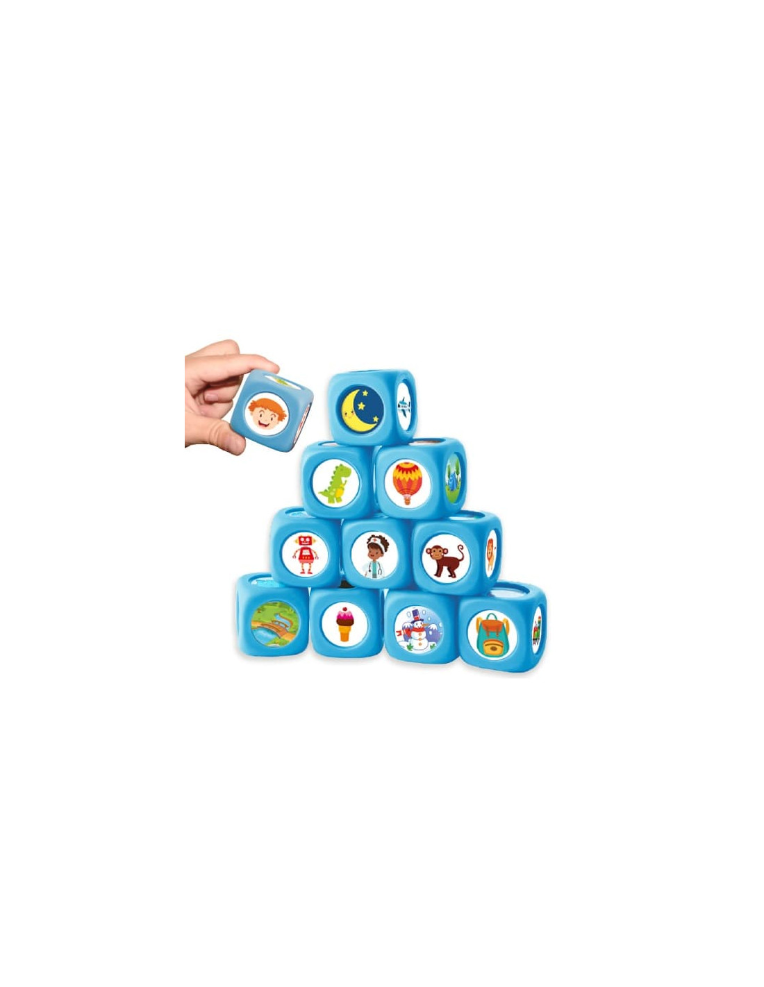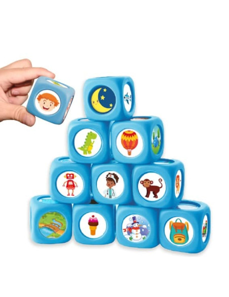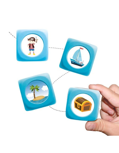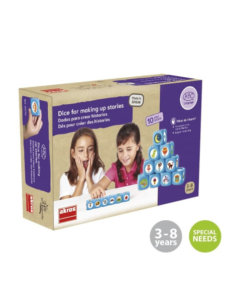Incluye 10 maxi dados y 72 pictogramas adhesivos.