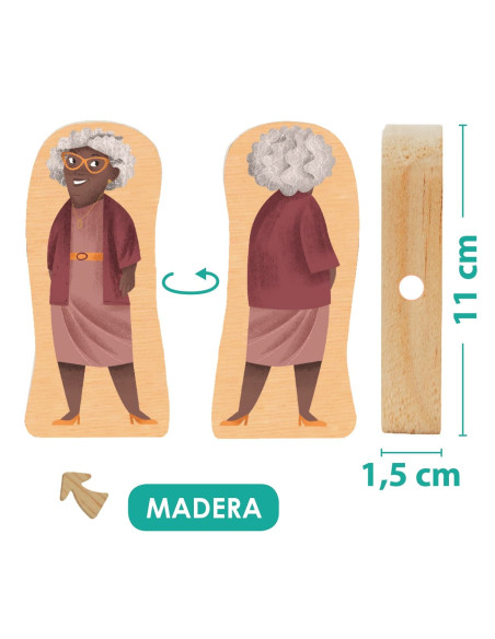 Juego de destreza manual con 24 figuras de madera, impresas por ambas caras,