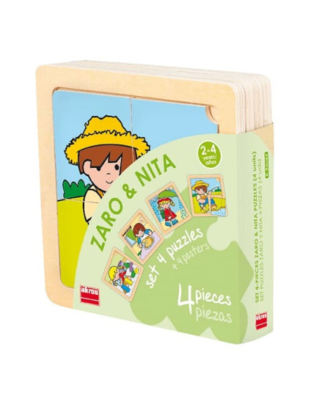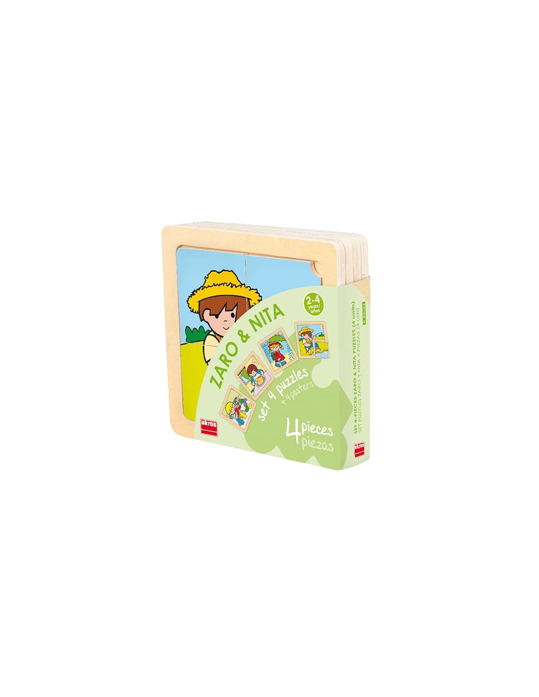 AKROSSet de 4 puzzles de madera de 4 piezas, 2 de Nita y 2 de Zaro.