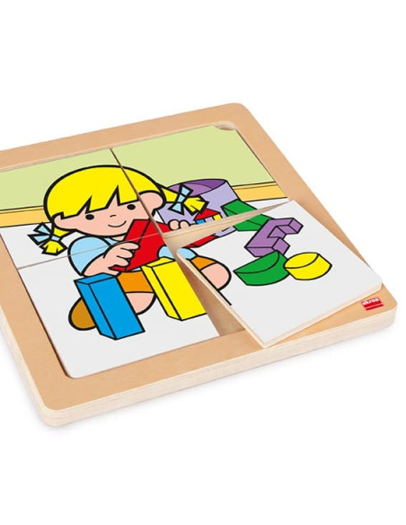 Incluye 4 puzzles de madera de 17,5 x 17 cm. y 4 posters.