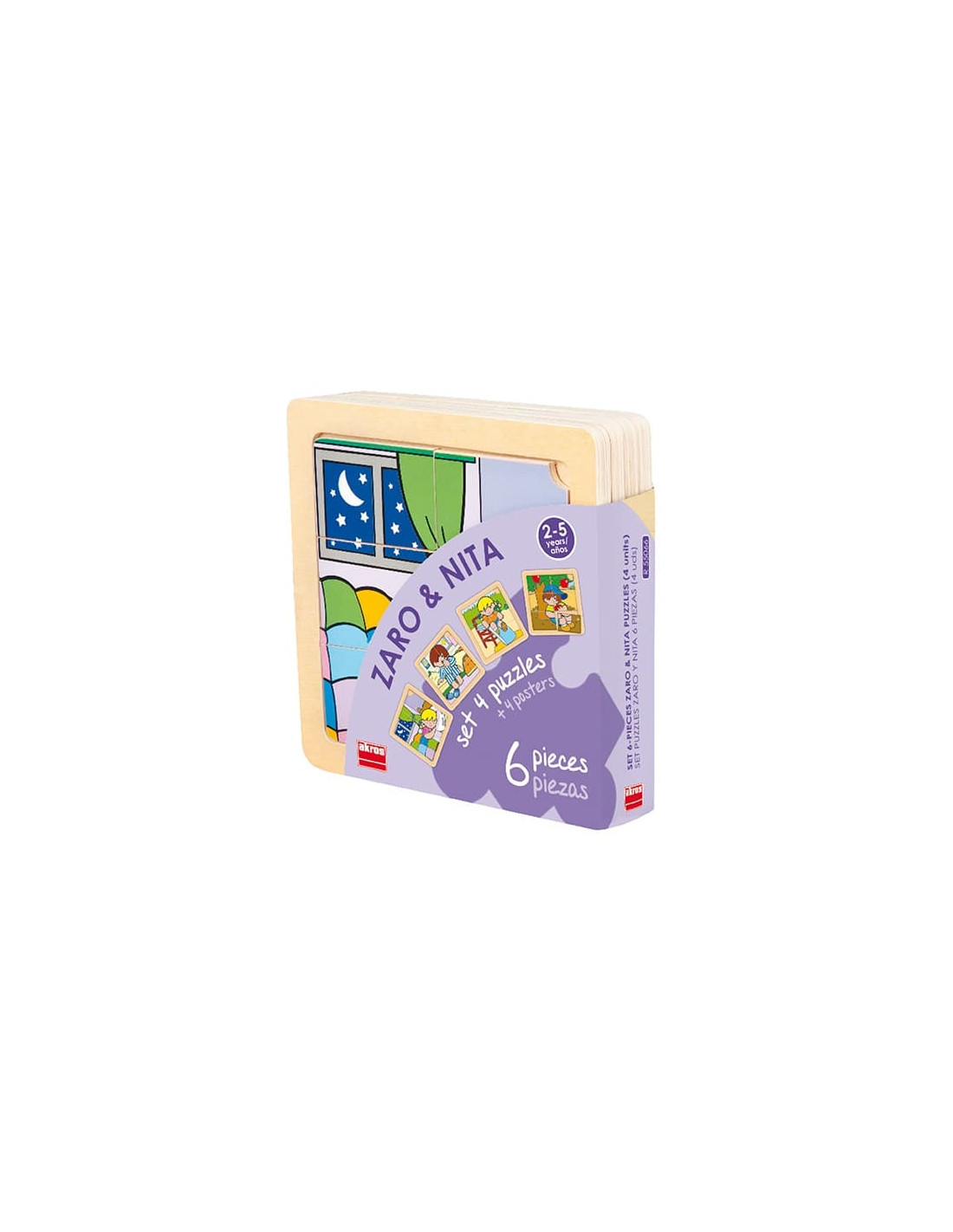 AKROSSet de 4 puzzles de madera de 6 piezas, 2 de Nita y 2 de Zaro.