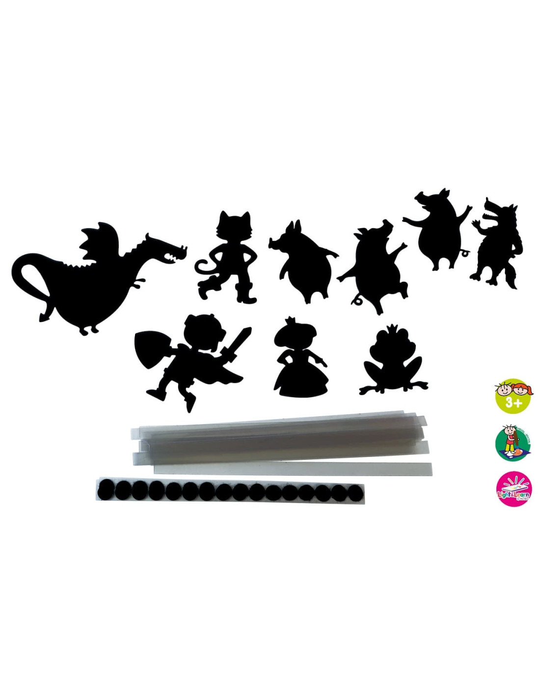 historia de: Caperucita, Gato con botas, Jorge y el dragón,