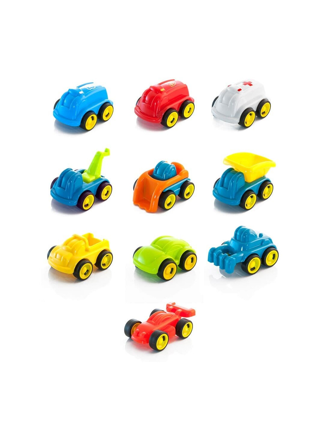 Incluye 10 vehículos : formula, coche de bomberos, coche,