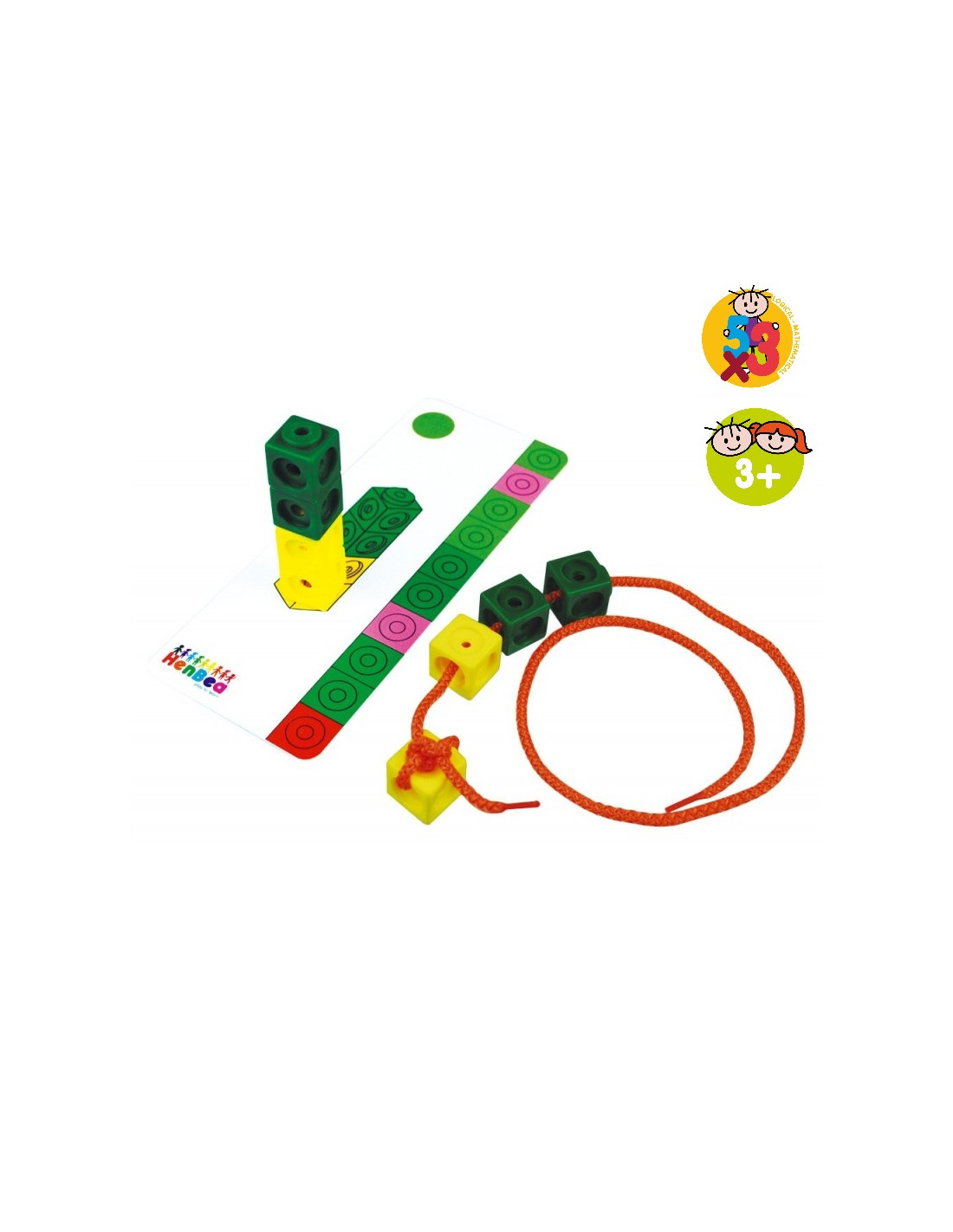 Incluye 10 tarjetas, 3 cordones, 100 cubos e