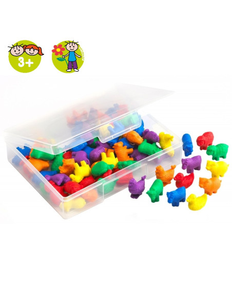 gallina, pato y caballo) en 6 colores (morado, amarillo,