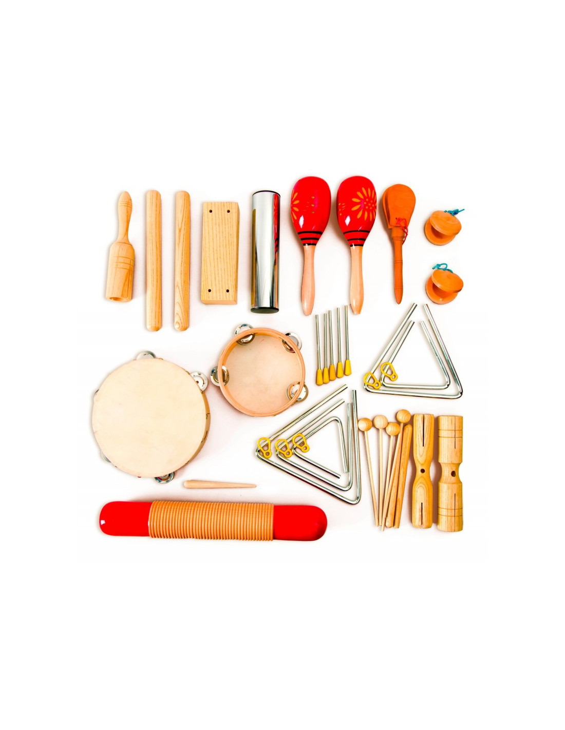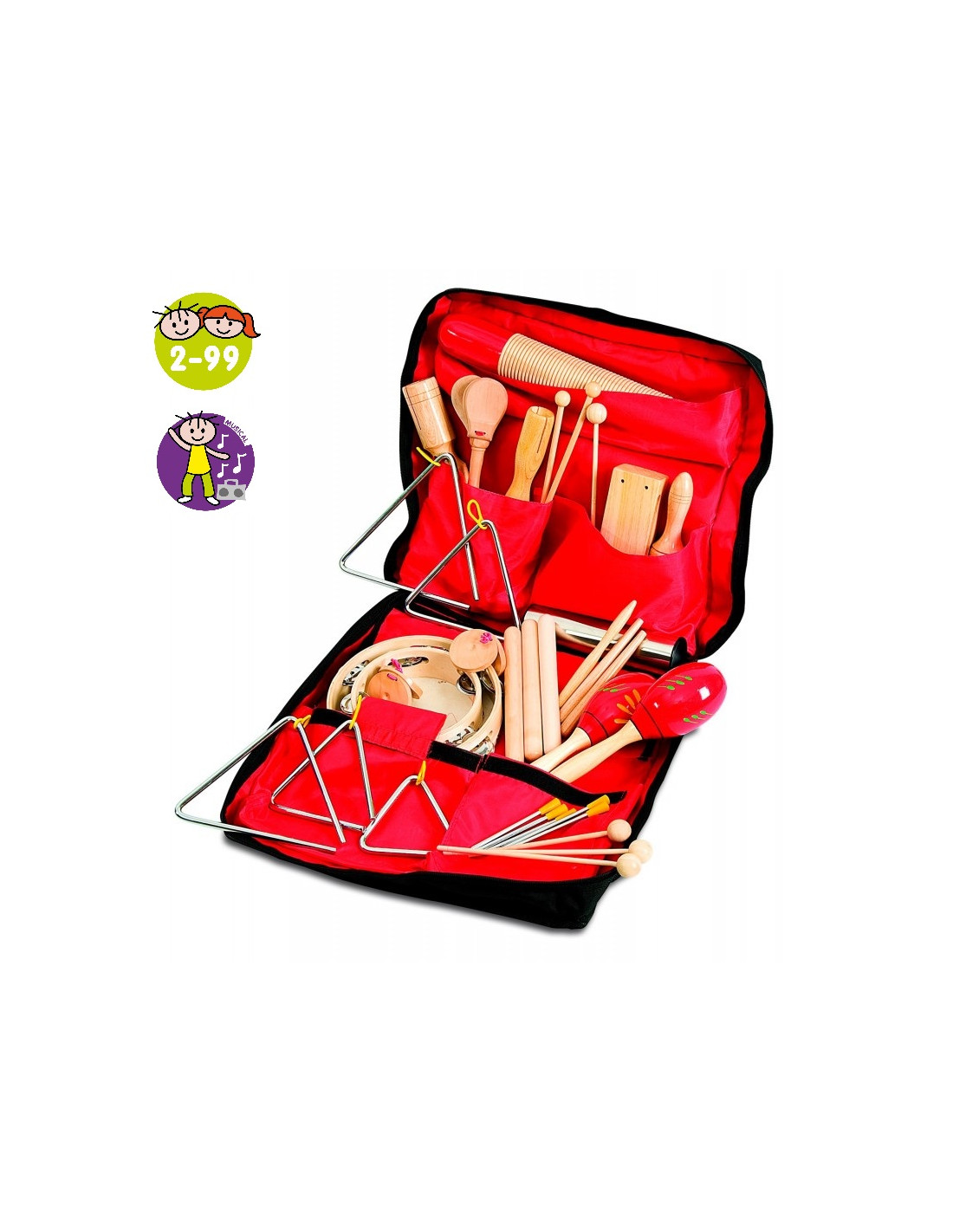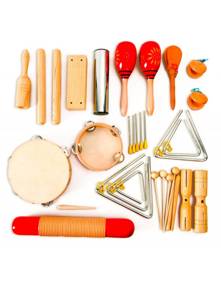 Incluye 2 panderetas, 5 triángulos, 2 clave,