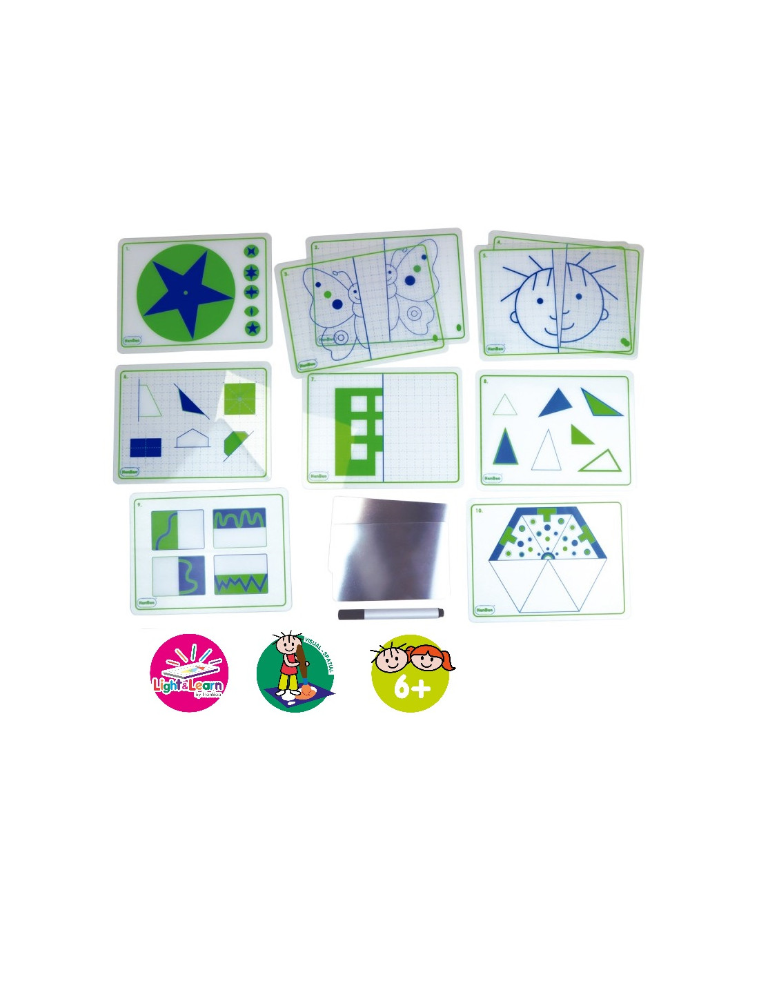 Incluye 10 tarjetas y 2 espejos.