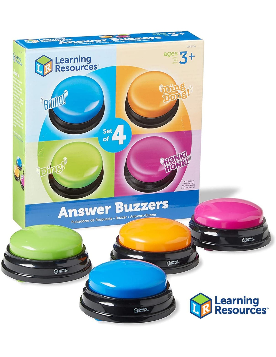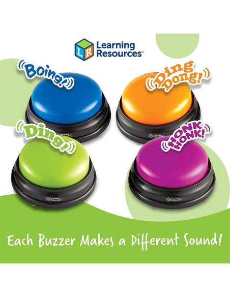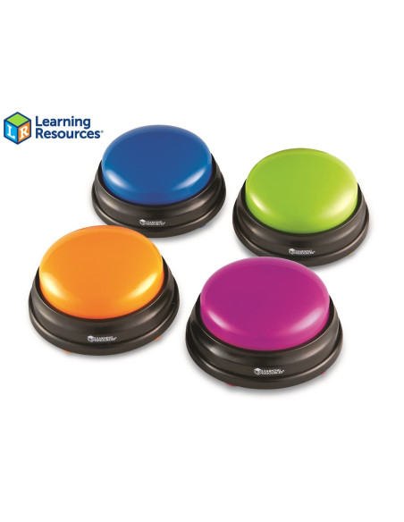 Juego de 4 pulsadores con diferentes sonidos, perfectos para utilizar para realizar diferentes actividades en clase. Cada pulsador emite un sonido diferente. Medida 8 cm. Pilas no incluidas.