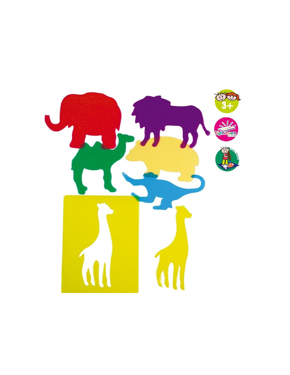 Contiene 6 plantillas de animales del zoo translúcidas.
