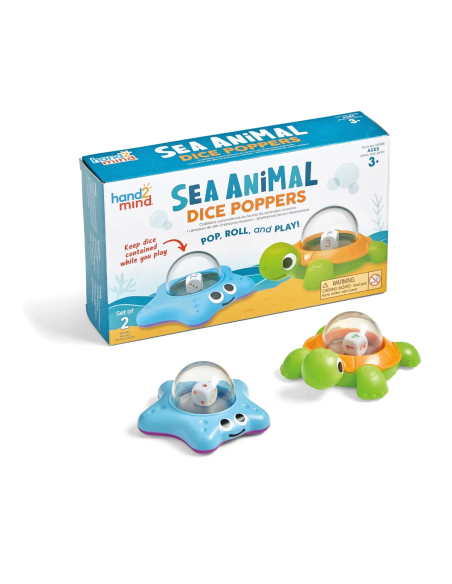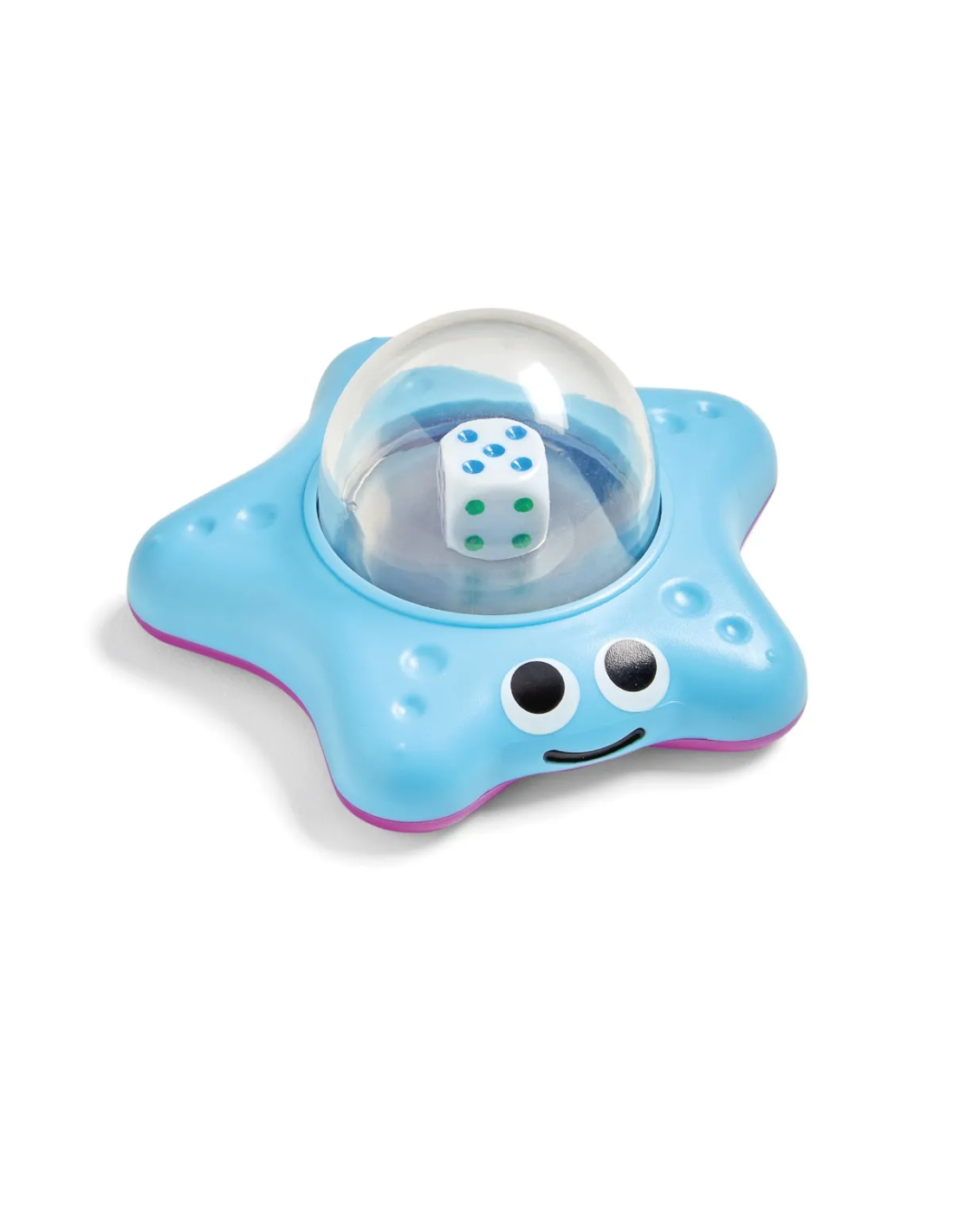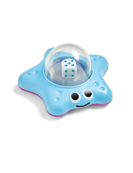 Simpaticos dados para jugar con forma de tortuga y estrella de mar para utilizar en diferentes juegos de mesa. La tortuga marca con números y la estrella con puntos. Edad recomendada +3 años