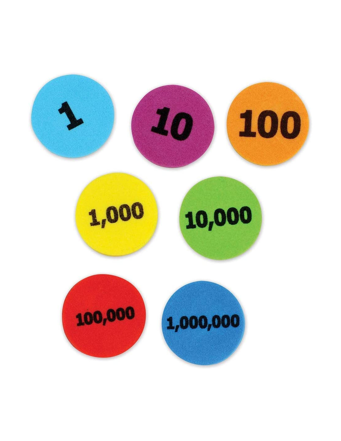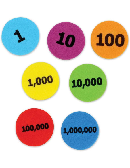 Aprende a contar, agrupar, sumar o restar de forma practica y visual. Cada disco lleva impreso un valor de 1 a 1000000. Perfecto para trabajar en las aulas. Incluye 280 fichas de colores. Edad recomendada +6 años.