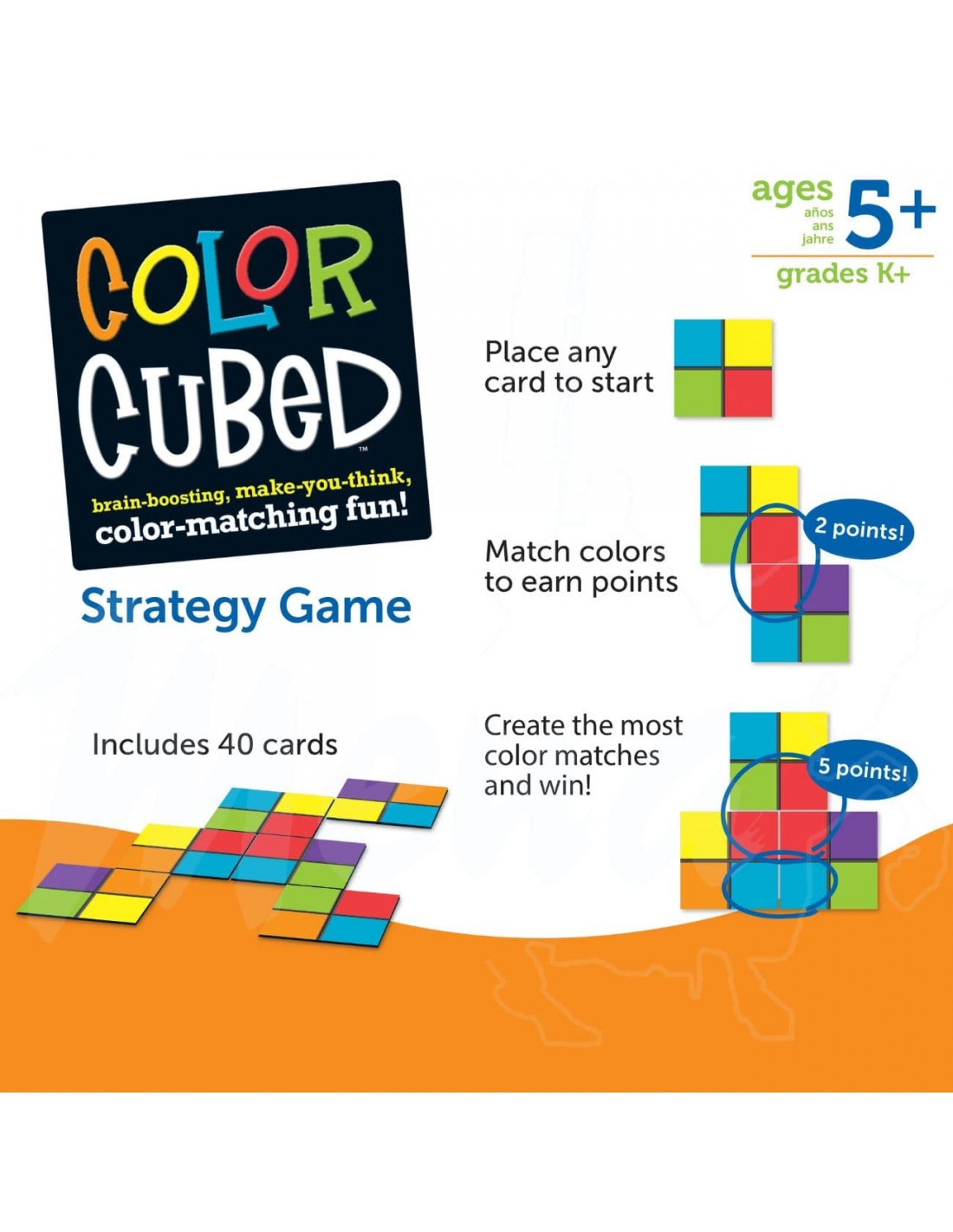Este juego de estrategia desafía a los niños a pensar de forma lógica y planifica mientras colocan cubos de colores para cumplir el objetivo del juego.