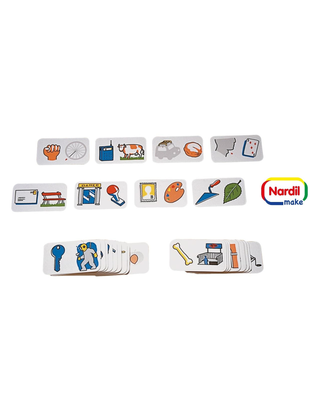 Contiene 28 fichas de plástico de 10 x 6 cm.