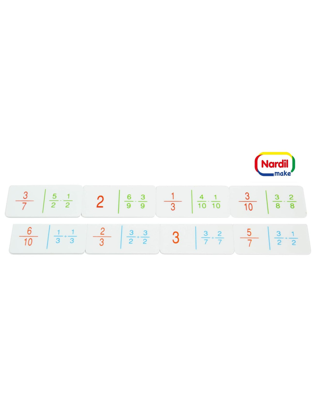 Contiene 56 fichas de plástico de 8 x 4 cm.