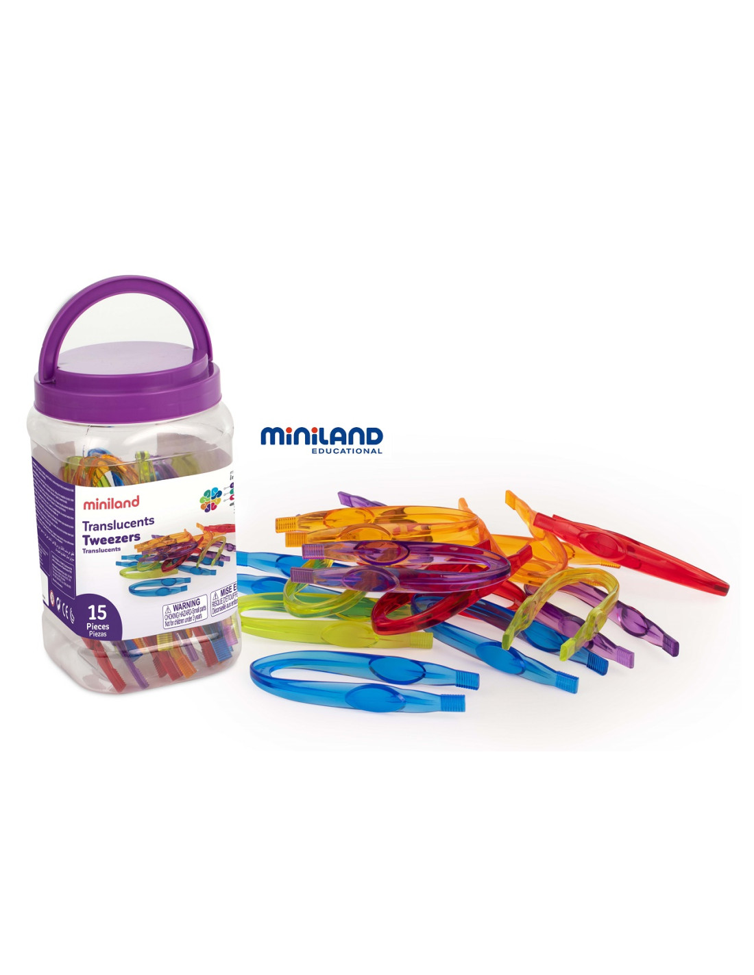 Set de 15 pinzas de colores translúcidas.