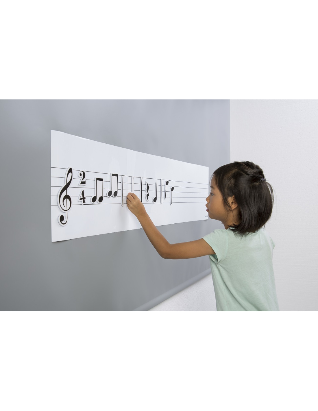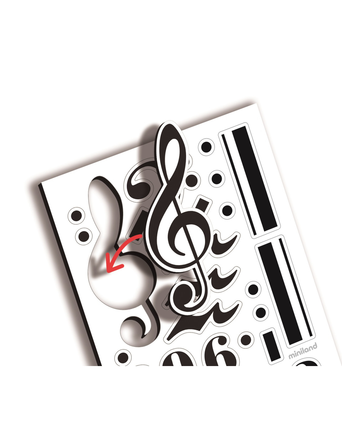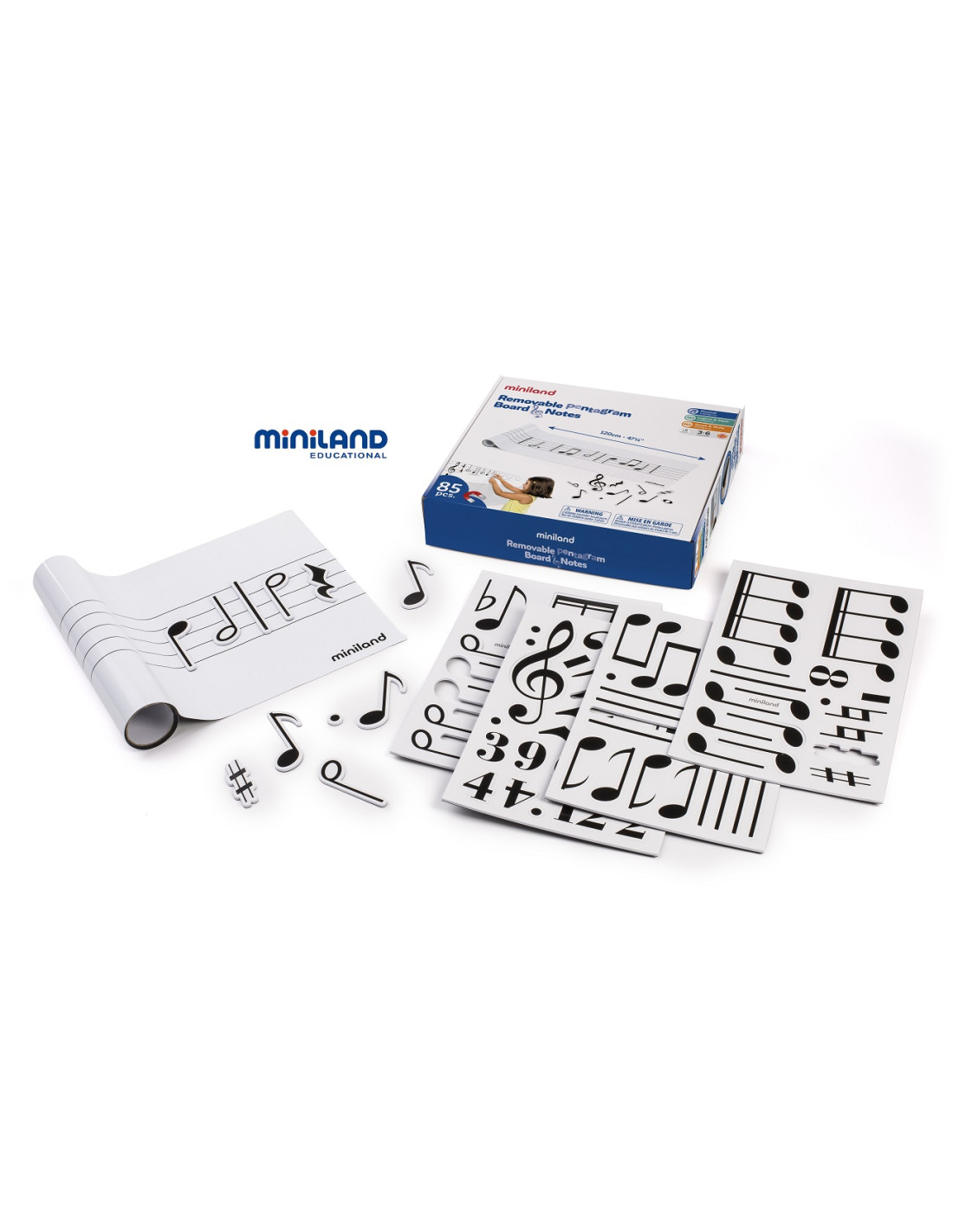 Contiene 85 figuras musicales, 1 pizarra y 1 folleto.