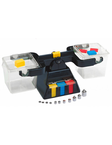 Contiene 14 pesas de plástico, 11 pesas de metal, 2 cubetas,