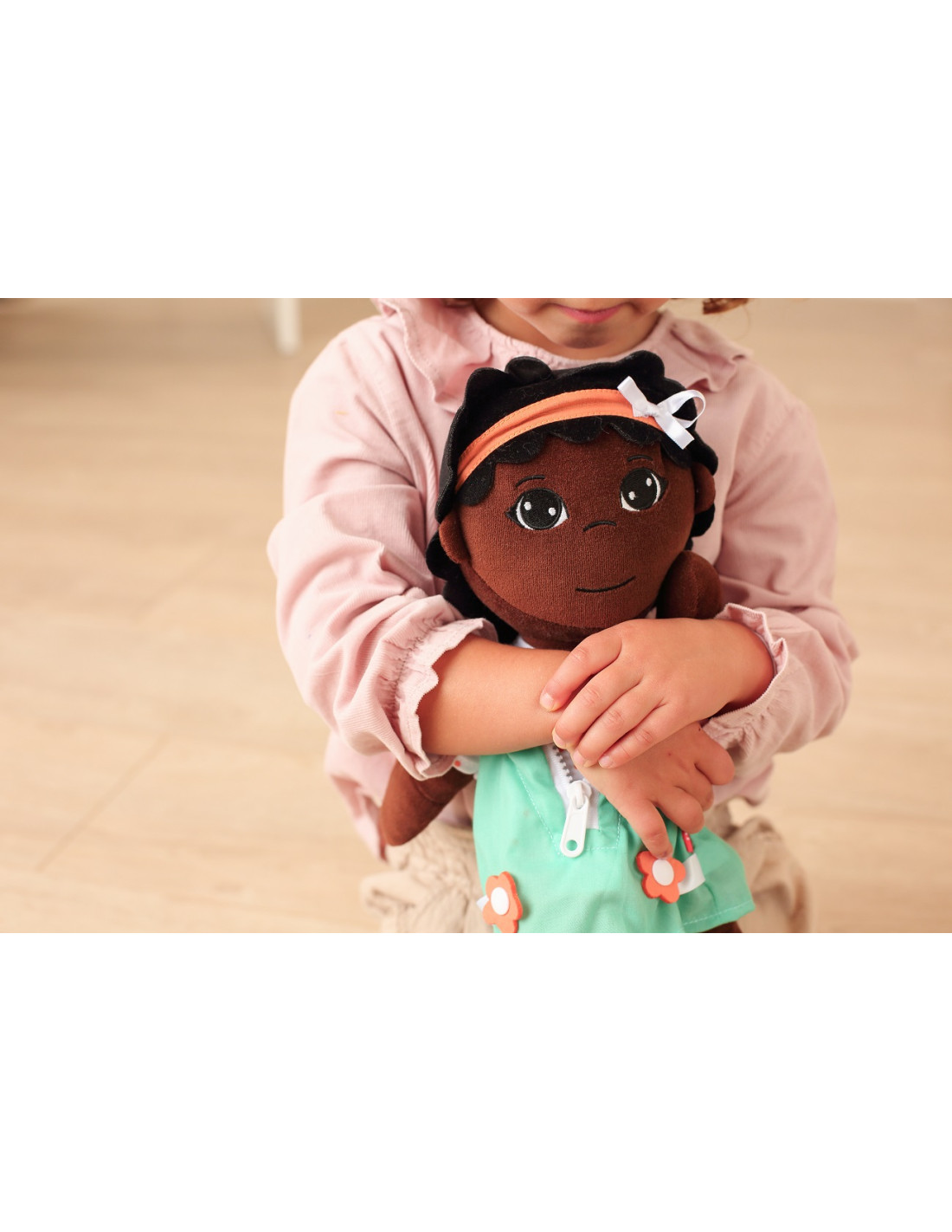 Muñecos de razas variadas blanditos y de tacto agradable. Una divertida manera de adquirir autonomía personal manipulandolos, aprendiendo a vestirles solos. Medida 40 cm. Edad recomendada +2 años.