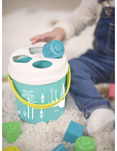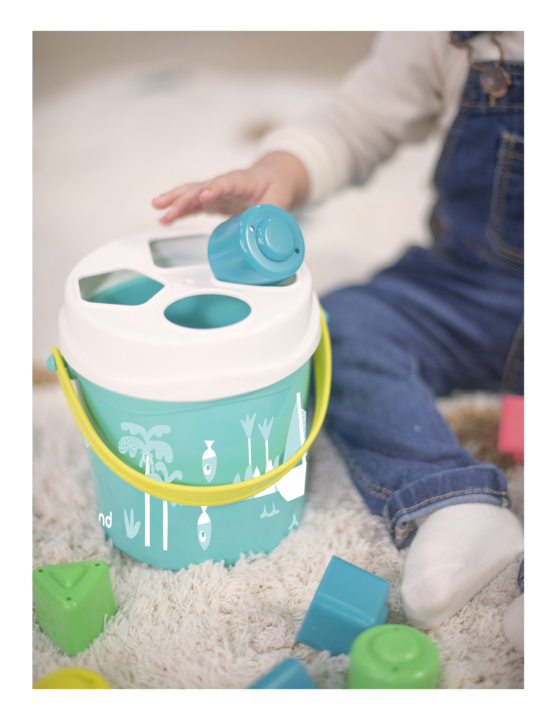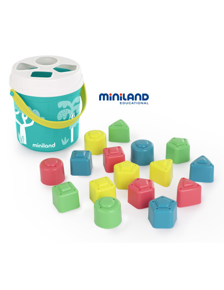 Contiene 1 cubo con asa, 1 tapa y 16 formas.