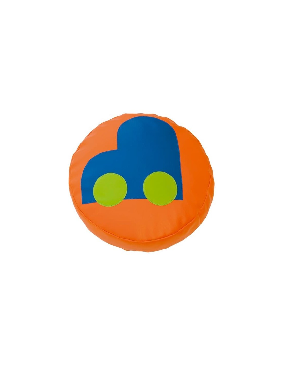 Cojín redondo estampado. Fabricado en espuma de poliuretano triturada, recubierto de tejido impermeable y laveble con agua y jabón. Cosido con hilo de alta resistencia, con sistema de cierre oculto. Puede ser fabricado con las combinaciones de colores que necesite, dentro de la gama de colores disponible. Medida 45 cm. Peso 0,50 kg