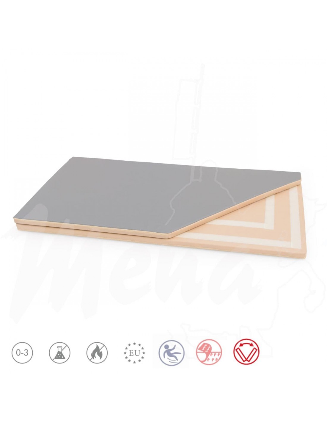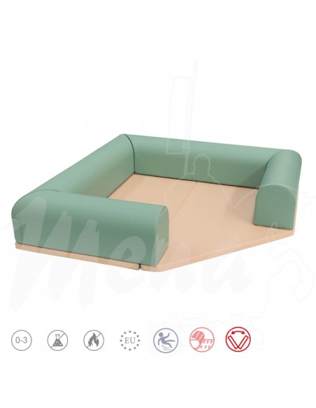 Zona de juegos cuadrada con tapete plegable.