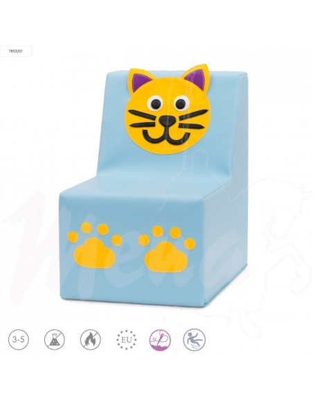 Sofá individua infantil con figura cosida. Fabricado en espuma de poliuretano de 23 kgm en tejido impermeable y lavable con agua y jabón. Cosido con hilo de alta resistencia, con sistema de cierre oculto. Fondo antideslizante Puede ser fabricado con las combinaciones de colores que necesite, dentro de la gama de colores disponible. Altura del asiento 25 cm Medida 35 x 45 x 50 cm. Peso 2 kg.