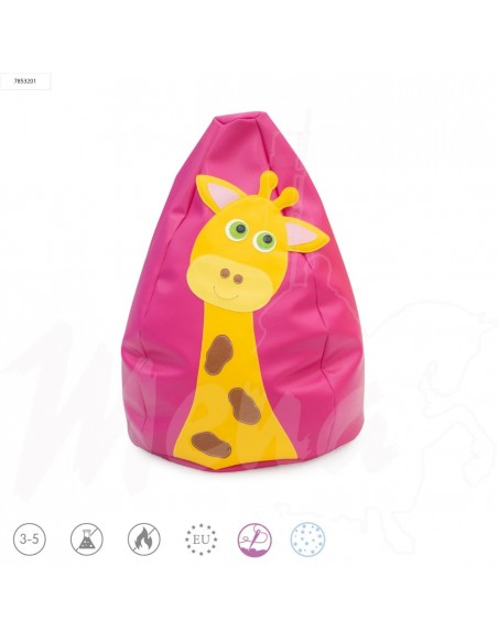 Puff con forma de pera, relleno de perlas de poliestireno, recubierto con tejido impermeable lavable. Cosido con hilo de alta resistencia, con sistema de cierre oculto. Puede ser fabricado con las combinaciones de colores que necesite, dentro de la gama de colores disponible. Medida 50 x 80 cm. Peso 2 kg.