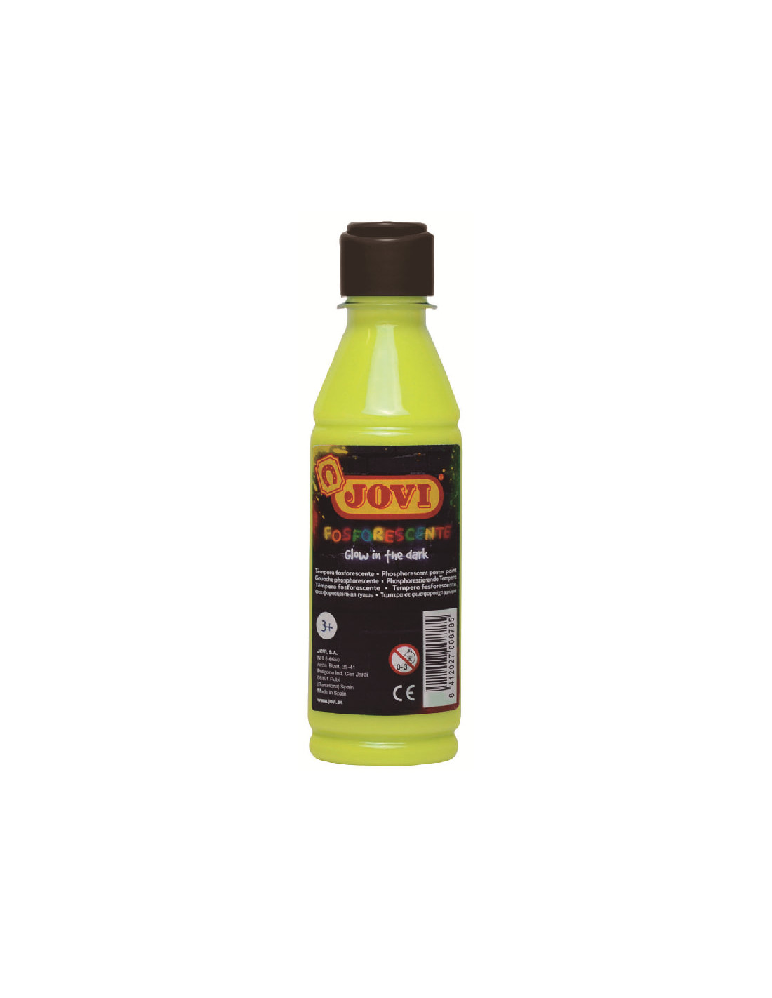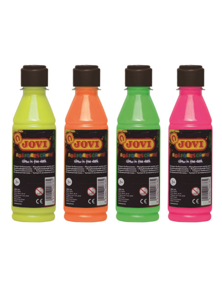 Botella de 250 ml de témpera líquida JOVI FOSFORESCENTE lista para usar.