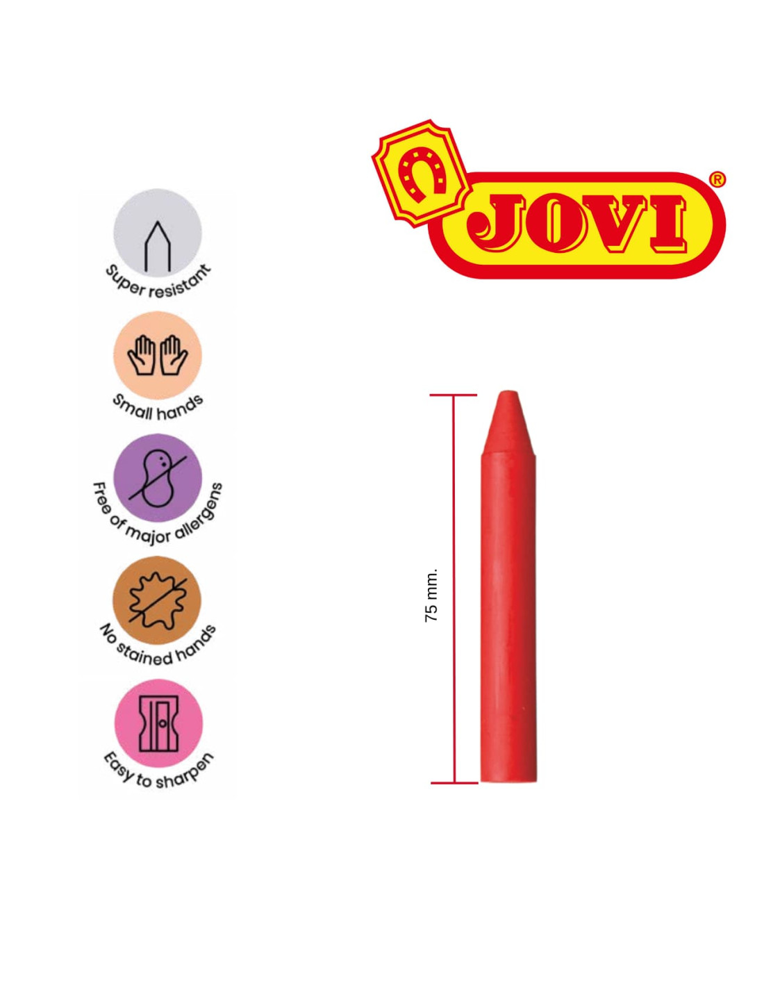 Caja con 12 Ceras redondas JOVICOLOR colores SURTIDOS.