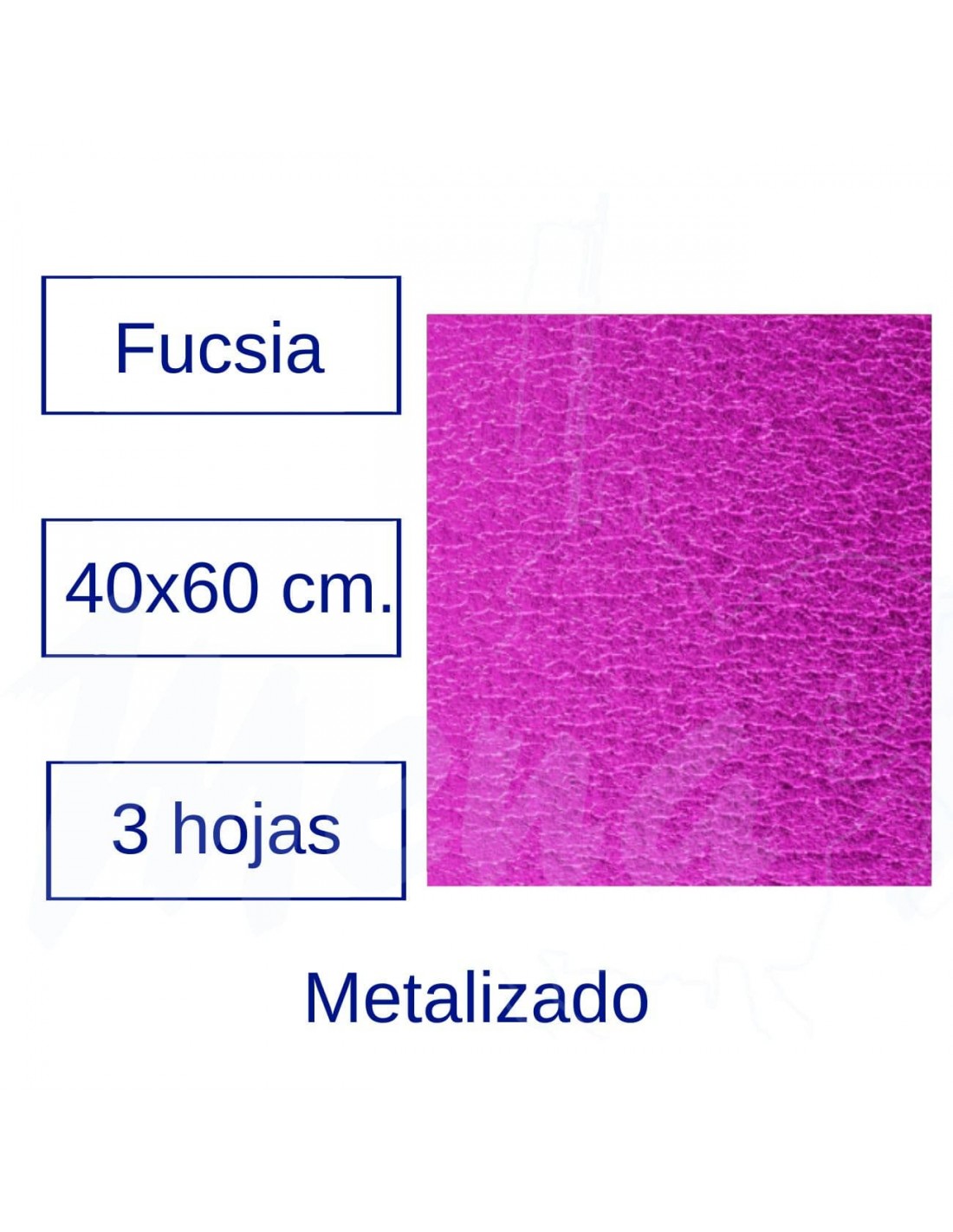 Láminas de goma EVA de efecto metalizado en color fucsia de 2 mm. de espesor. Pack de 3 láminas. Medidas 40 x 60 cm.