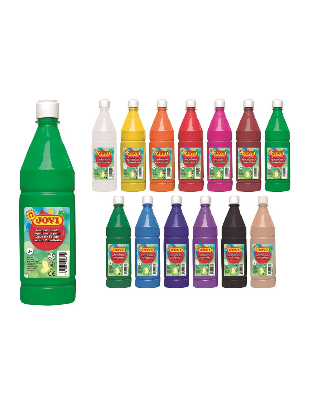 Botella de 1.000 ml de témpera líquida JOVI lista para usar.