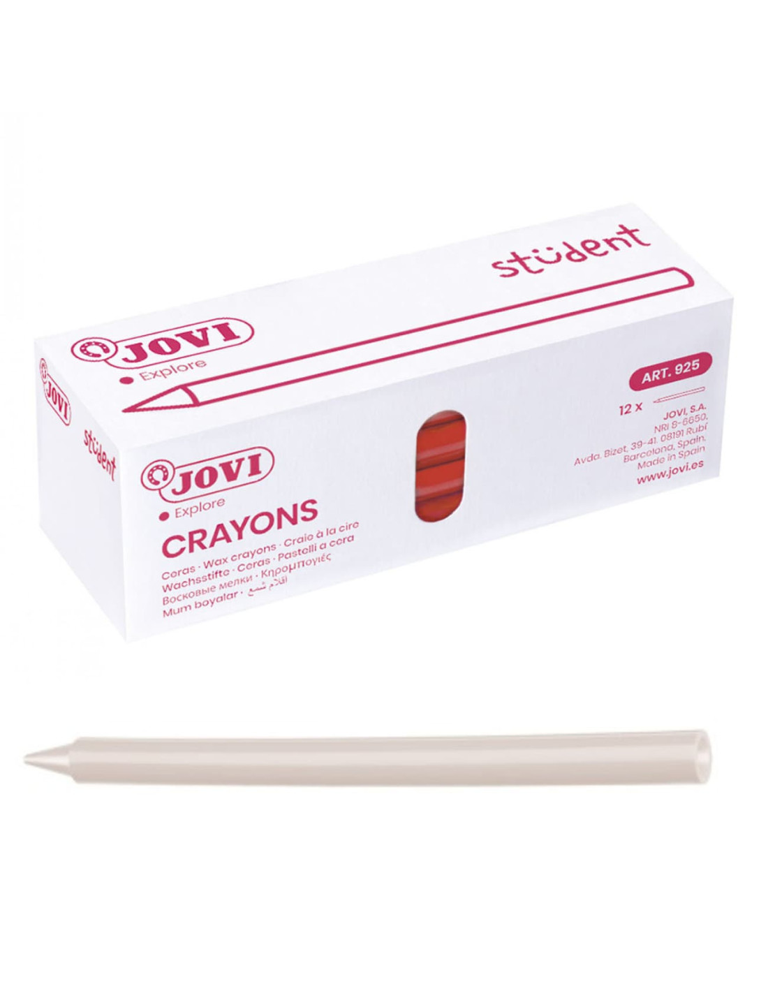 Caja con 25 ceras plásticas JOVI unicolor. Formato Escolar