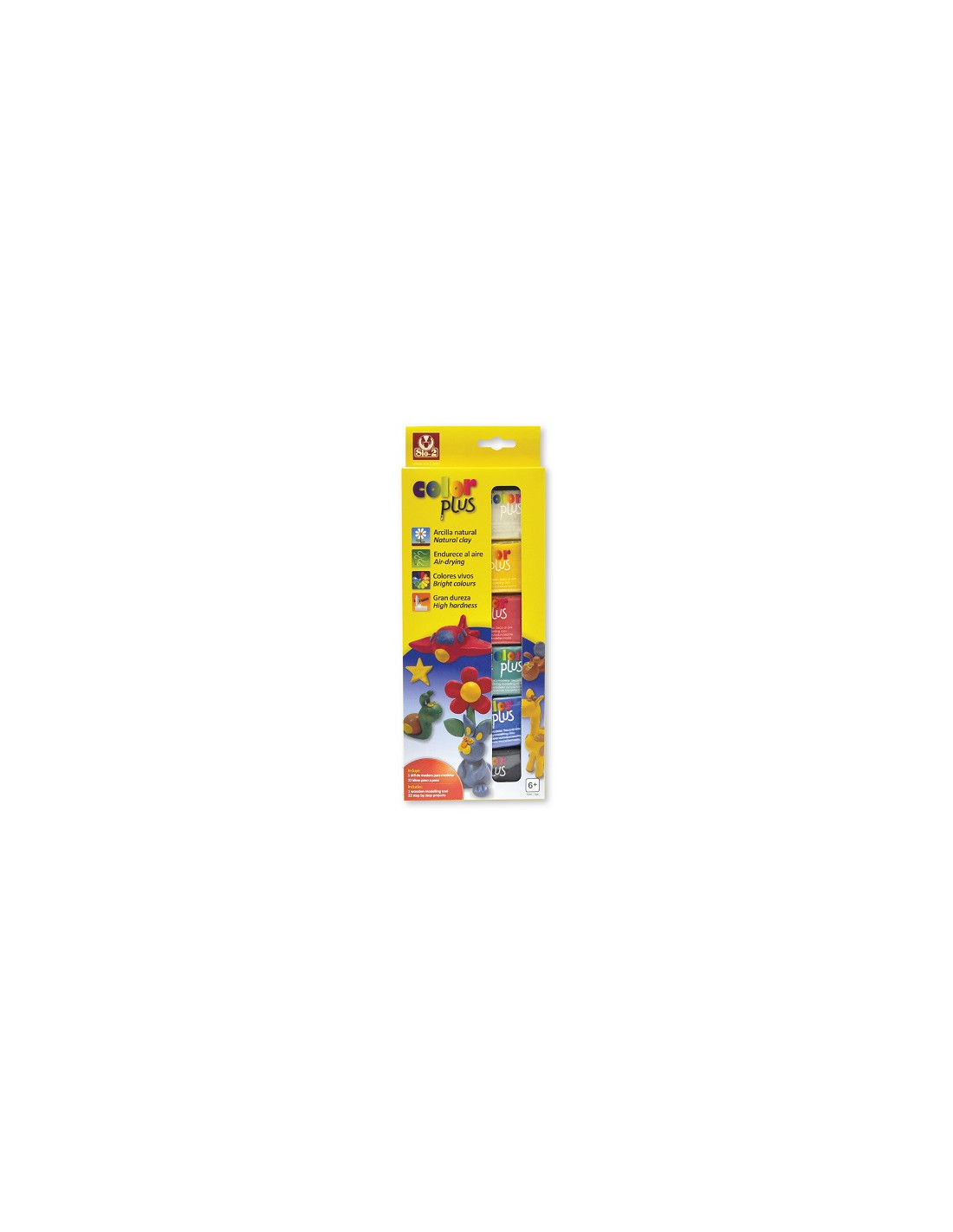 Caja con 6 pastillas COLORPLUS 75 g Colores: Blanco, amarillo, rojo, azul, verde y negro.