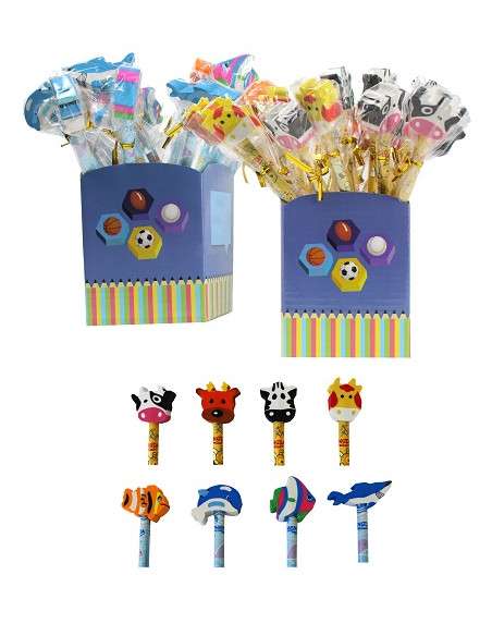 Bote con 24 lápices grafito con goma de borrar con forma de OCEANO.