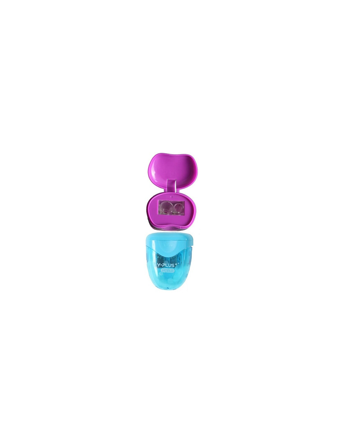 Sacapuntas de plástico con tapa y agarre ergonómico.