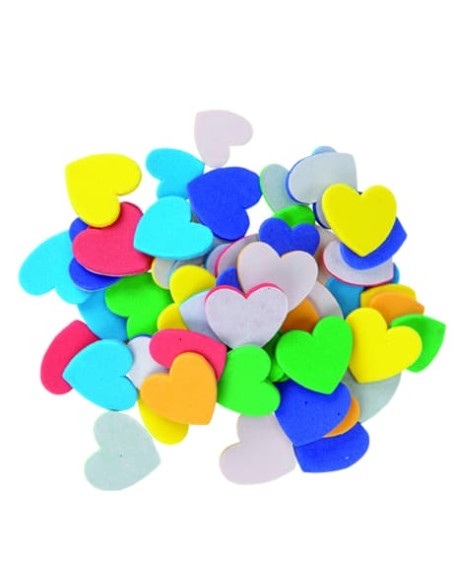 Figuras de Goma Eva con adhesivo en la parte trasera. Contienen 60 uds con distintos tamaños, formas y colores. Utilizando conjuntamente varios diseños se pueden realizar multiples combinaciones. Pueden pegarse en casi todas las superficies.