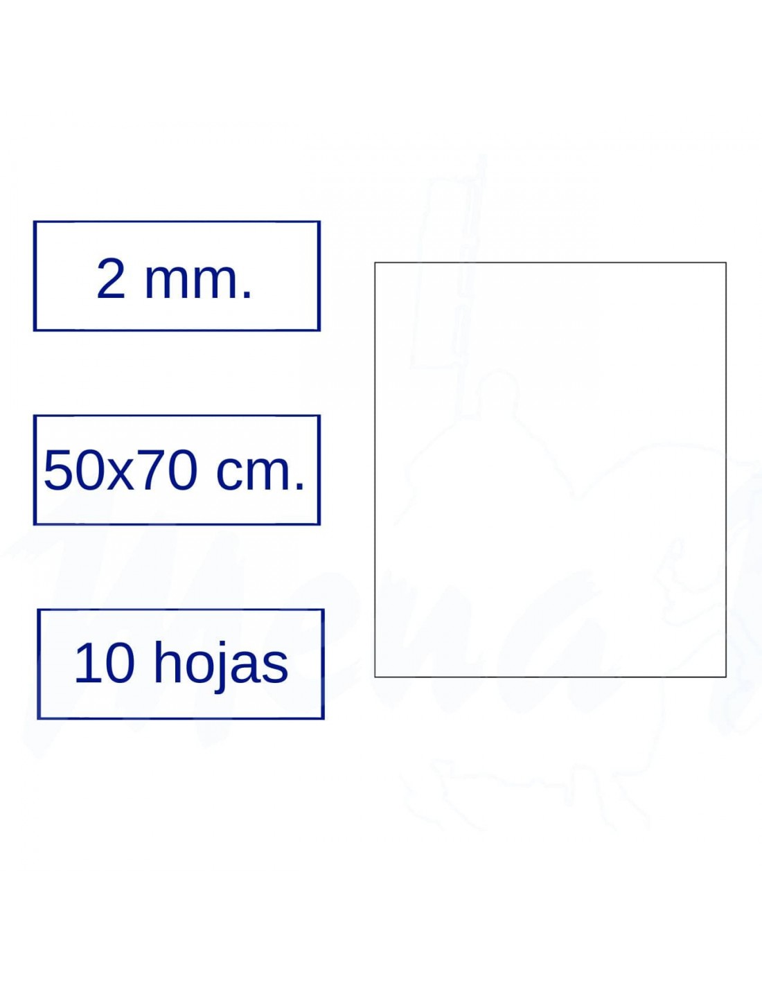 Paquete con 10 láminas 50x70 cm LISAS de 2 mm de grosor.