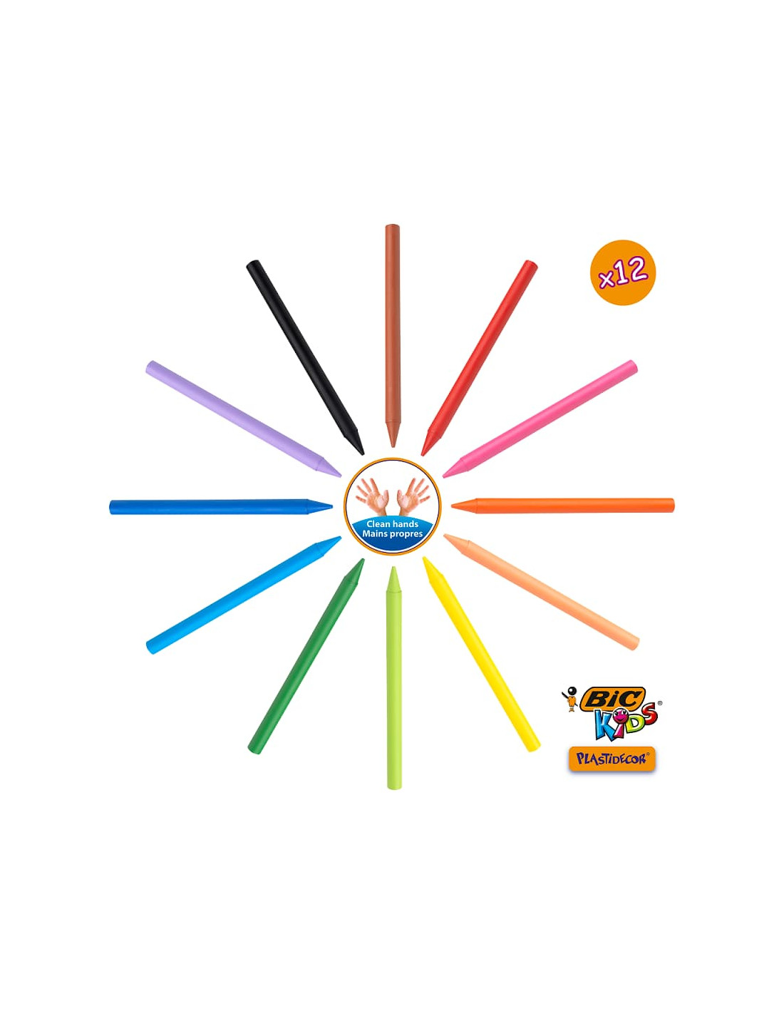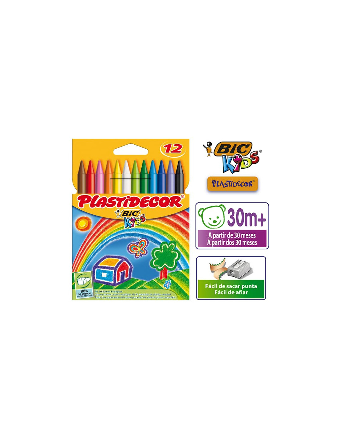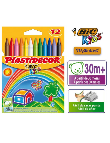 Caja con 12 ceras plásticas PLASTIDECOR colores surtidos.